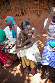 This time, something is different. I can see the woman who is sick, the one they have called me about. But instead of lying alone on the dirt per usual, she has been placed on a mat and is covered with a blanket. Neighbor women – my friends – stand all around her and Scovia puts a cup of water up to her lips. She sips. She is very sick, but stable now, and I whisper thanks.