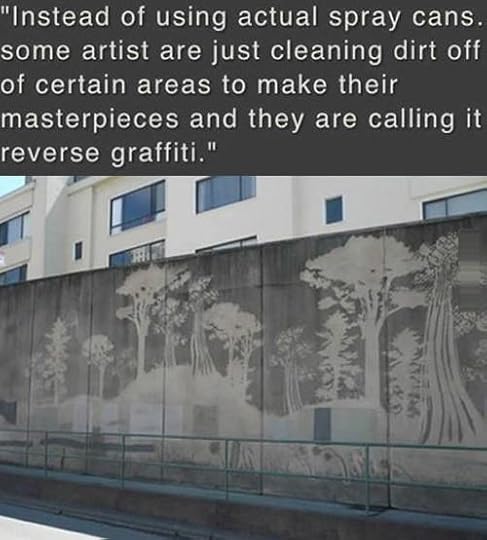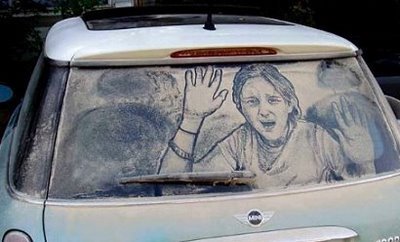 Reverse graffiti, also known as clean tagging, dust tagging, grime writing, green graffiti or clean advertising, is a method of creating temporary or semi permanent images on walls or other surfaces by removing dirt from a surface. It is often done by removing dirt/dust with the fingertip(s) from windows or other dirty surfaces, such as writing ‘wash me’ on a dirty vehicle. Others, such as artist Moose, use a cloth or a high power washer to remove dirt on a larger scale. - Source