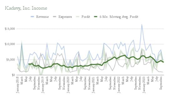 October’s revenue was $4,874, down from September’s $8,182. Profits were $3,935, down from September’s $7,127.