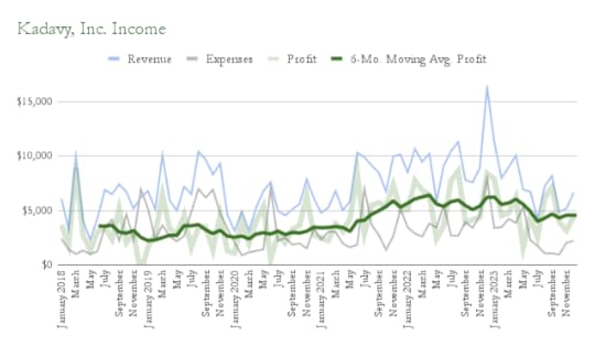 December’s revenue was $6,631, up from November’s $5,157. Profits were $4,424, up from November’s $3,143.