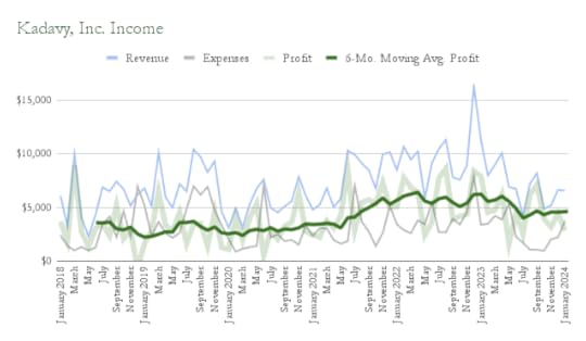 January’s revenue was $6,561, down from December’s $6,631. Profits were $2,815, down from December’s $4,424.