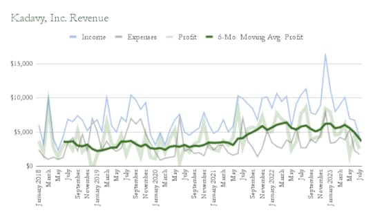 Revenue continues to be lower, and now you can even see it in the 6-month moving average trend line on the graph. It certainly makes me miss the days when I was breaking a record every month for a year.