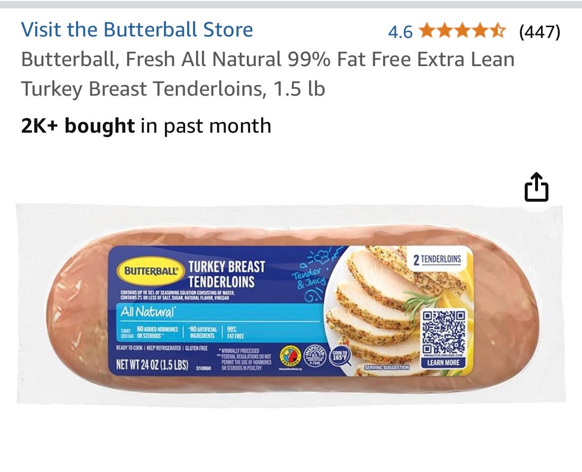 Y’all, I didn’t even know turkey tenderloins existed, lol. I thought if I wanted fresh turkey I’d have to buy a whole turkey breast or something (which is a commitment because they’re giant.) But no, you can get tenderloins! They aren’t huge and two come in a pack, which will keep you in deli meat for a week. The price varies from $8-10 a pack and gets you 1.5 lbs of meat.