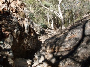 John sent us on our way while he prepared a barbecue lunch for us which he promised would be ready within an hour. I pressed ahead along the path to the chasm. The walkway began fairly flat and even but soon rocks became boulders and the path proved too much for some of the older members of the group. There were a few different walks throughout Standley Chasm but at least one was restricted to experienced walkers and considered quite dangerous. I somehow resisted the challenge!