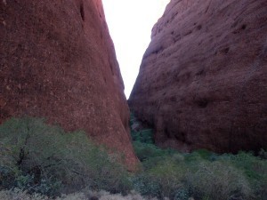 After the exciting tour of Ayers Rock we followed up our journey with sightings of the Olgas. First off we went for an hour-long stroll in Walpa Gorge which offered an impressive view of the towering rocks, particularly of the eroded face. The walk was overshadowed by one of our party losing her footing and landing heavily. The walk in Walpa Gorge was hard work in general so for the elderly members of our group it must have been tough. The path itself was unpredictable in places and contributed to the accident. Luckily, the woman in question wasn’t seriously hurt but she was still later taken to the Flying Doctors Building as a precaution. I don’t mean to sound disrespectful to elderly people but surely there are some easier walks for them in the Northern Territory. The majority of the group didn’t complete the Walpa Gorge trek.