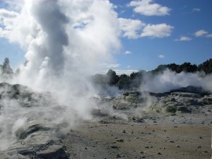 The landscape on New Zealand’s north island was volcanic and in complete contrast to the south. The odd mountain was still around as were the forests but generally the land didn’t hold the same eye-catching traits as its southern neighbour. At least that’s how it seemed at the start of the day. Things were soon to change.