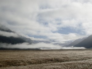 We reached the town of Fox Glacier around 5.30. Dave had informed us the place was small and he wasn’t joking. It took me five minutes to walk round the town and that included a browse through the souvenir shop! Fox Glacier is just a road with a couple of shops, pubs, restaurants, hotels and a garage on either side. A smaller road leads off from the main one to some housing but that’s pretty much it. Think of that pub in Cheers where everyone knows your name, well, I imagine this town is similar.