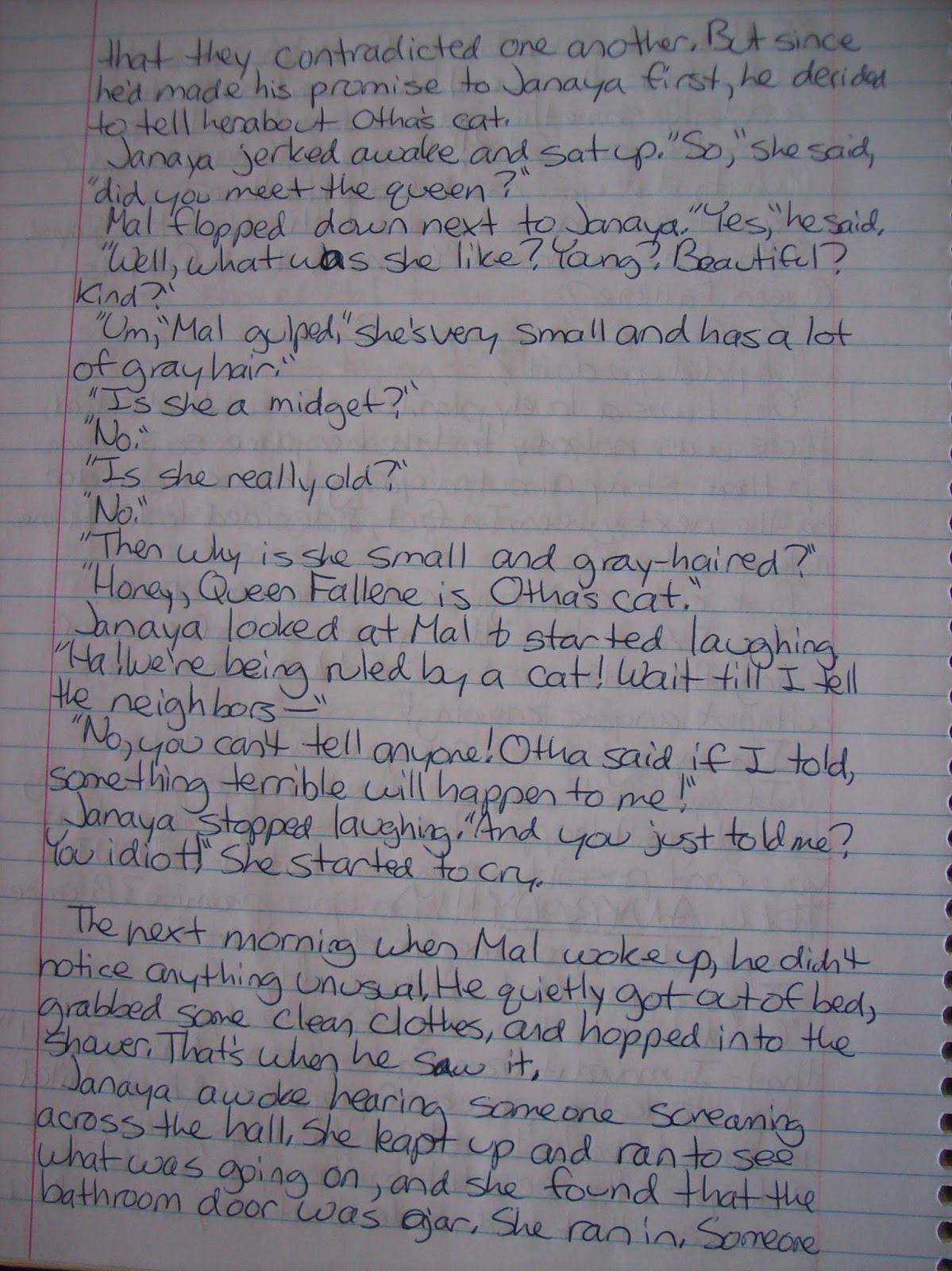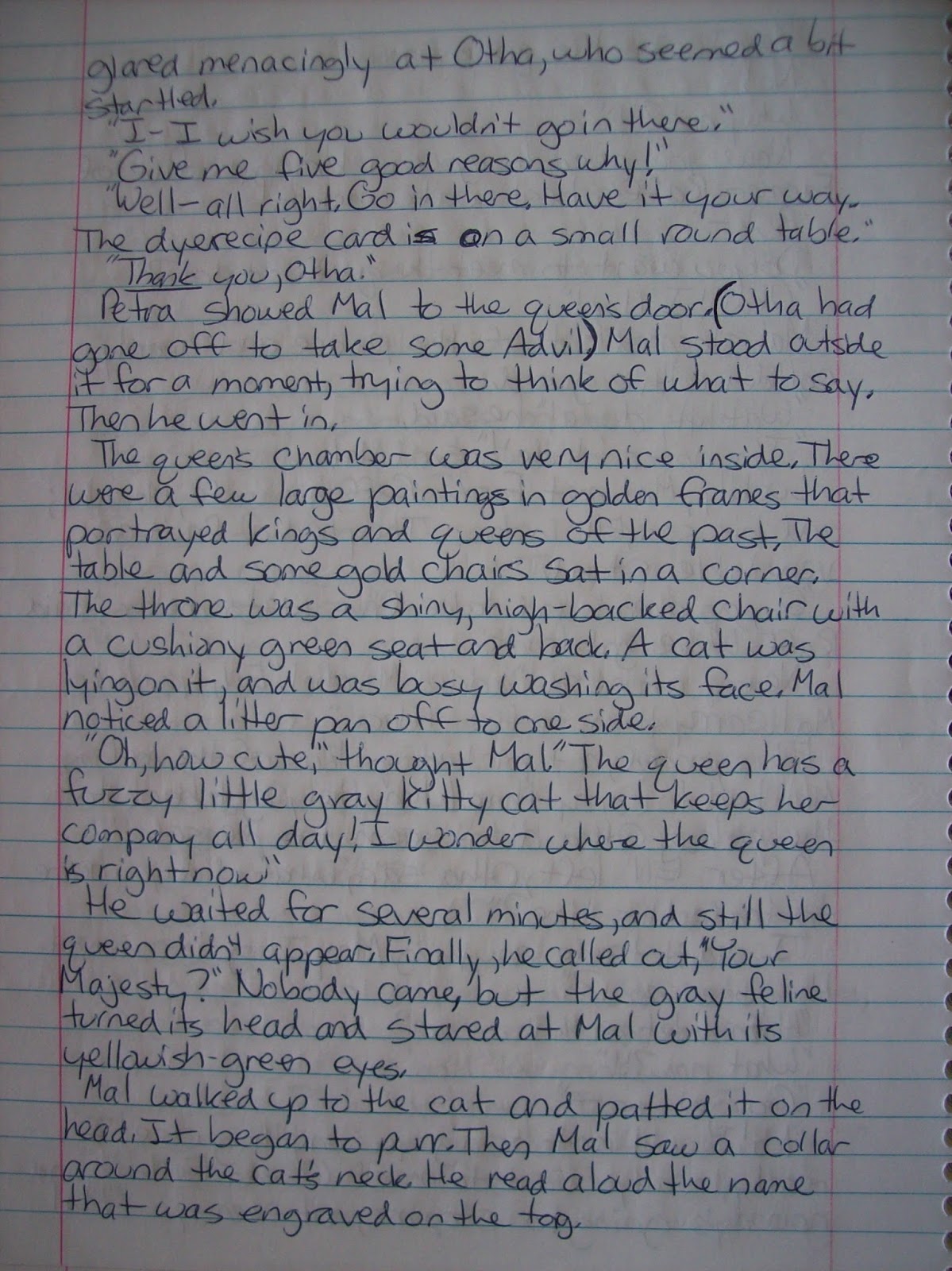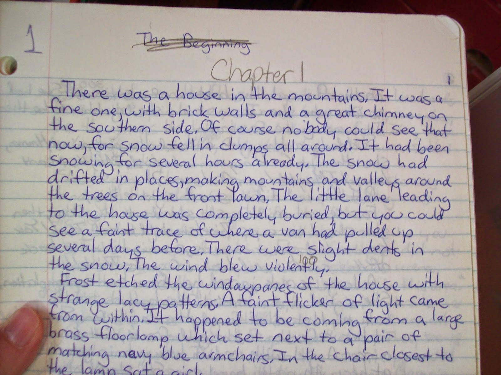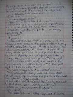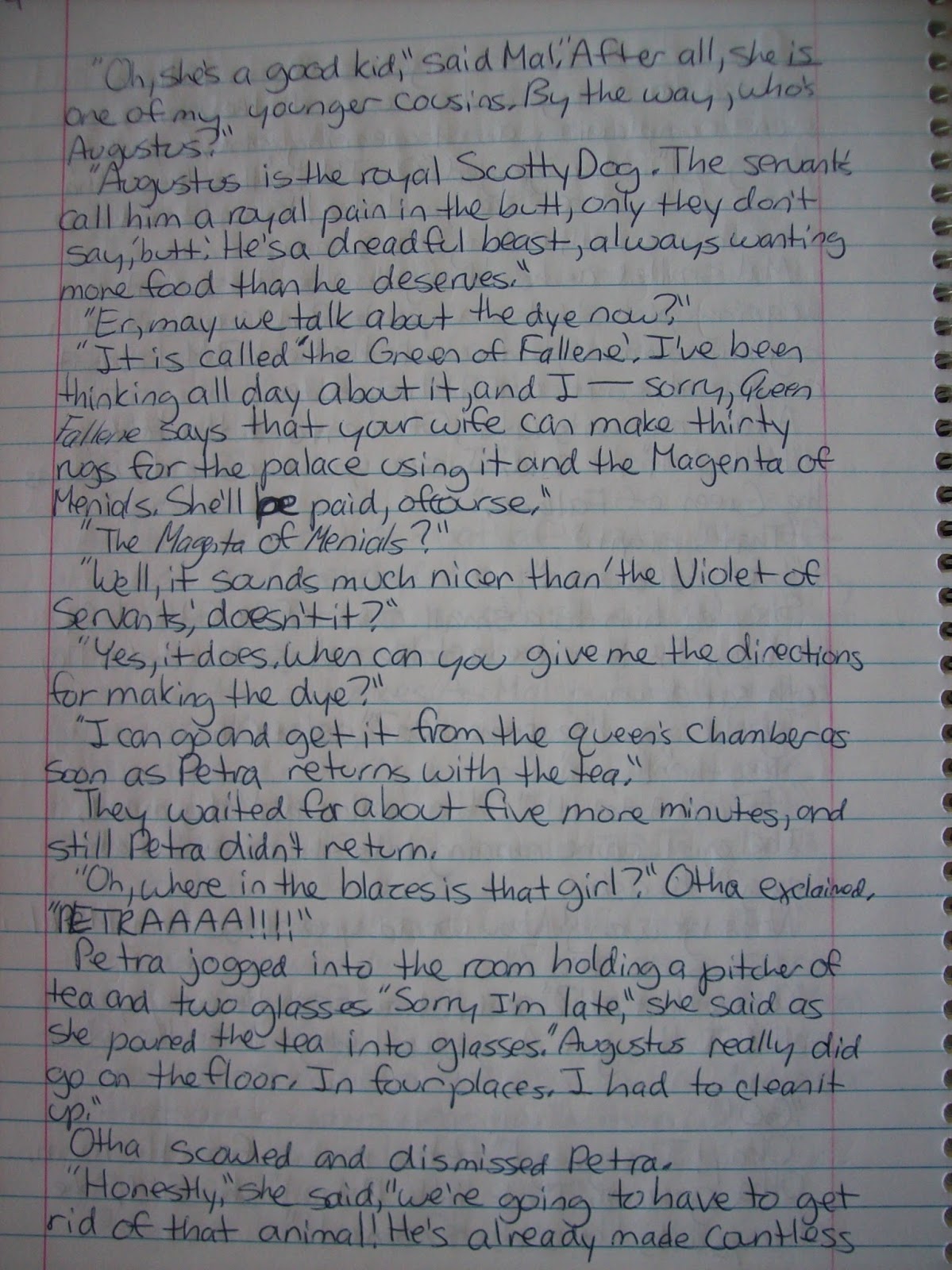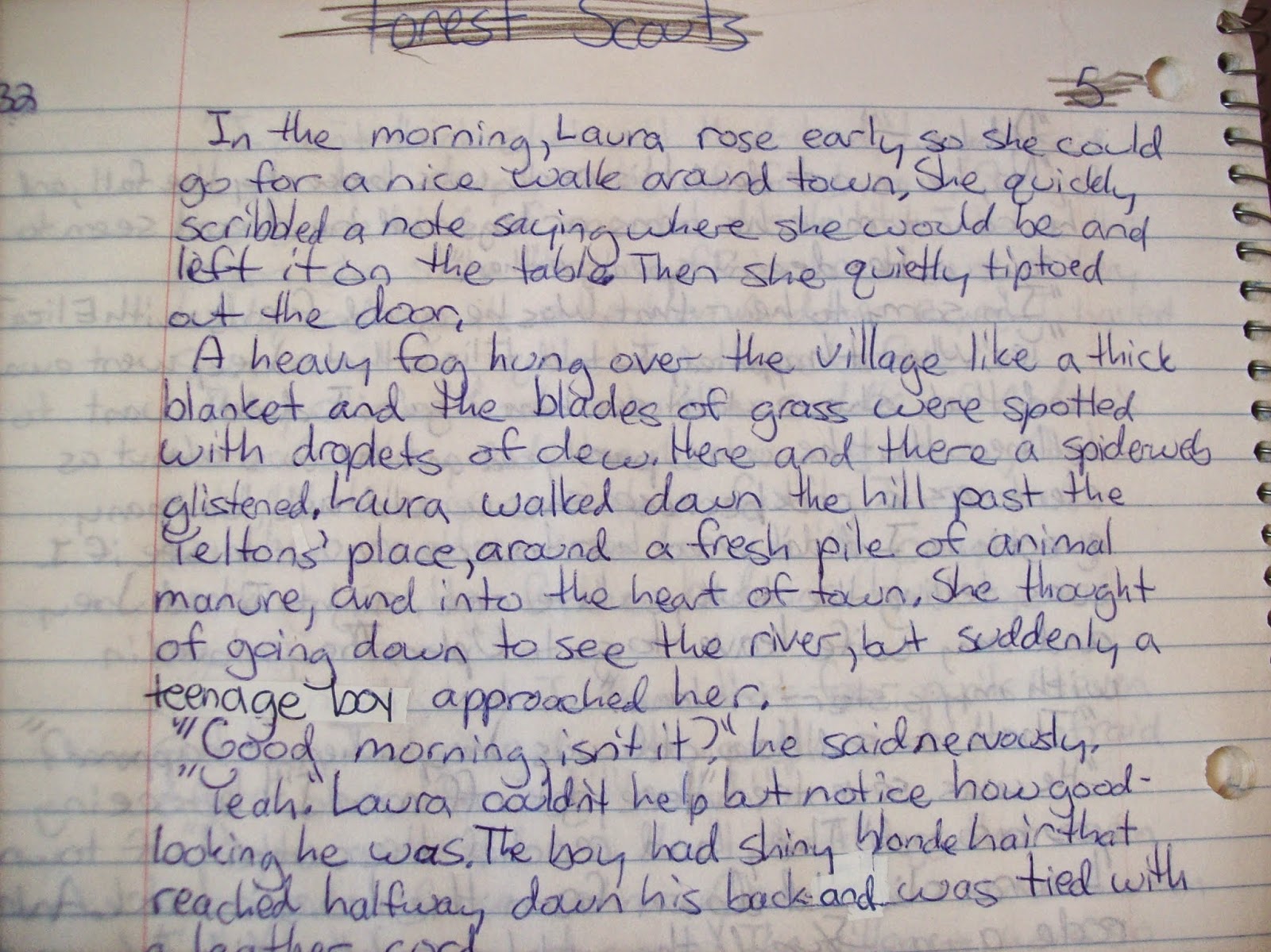 My writing has changed a lot since the days I sat down with a ballpoint pen and notebook and began to write the story that wouldn't be seen by the reading public for another eight years. Just for fun, here are some pictures from that notebook. (Don't mind the terrible penmanship. Apparently it's a requirement for authors to have bad handwriting.)