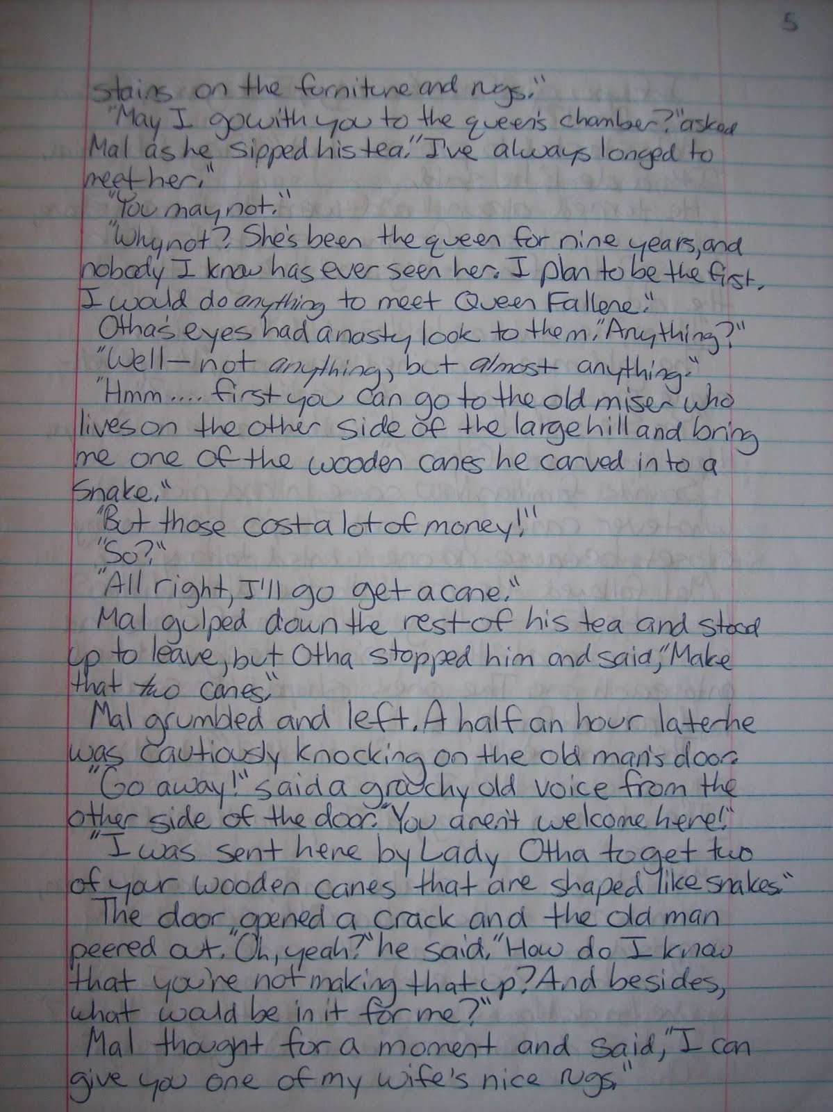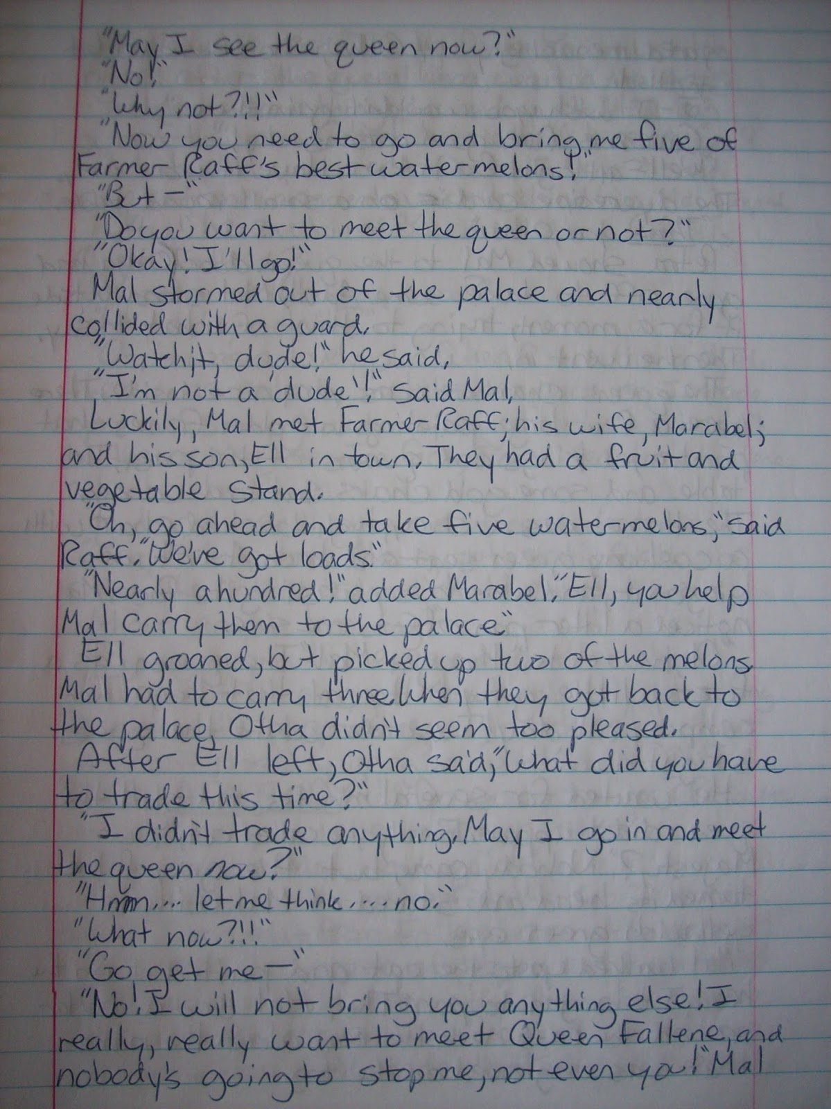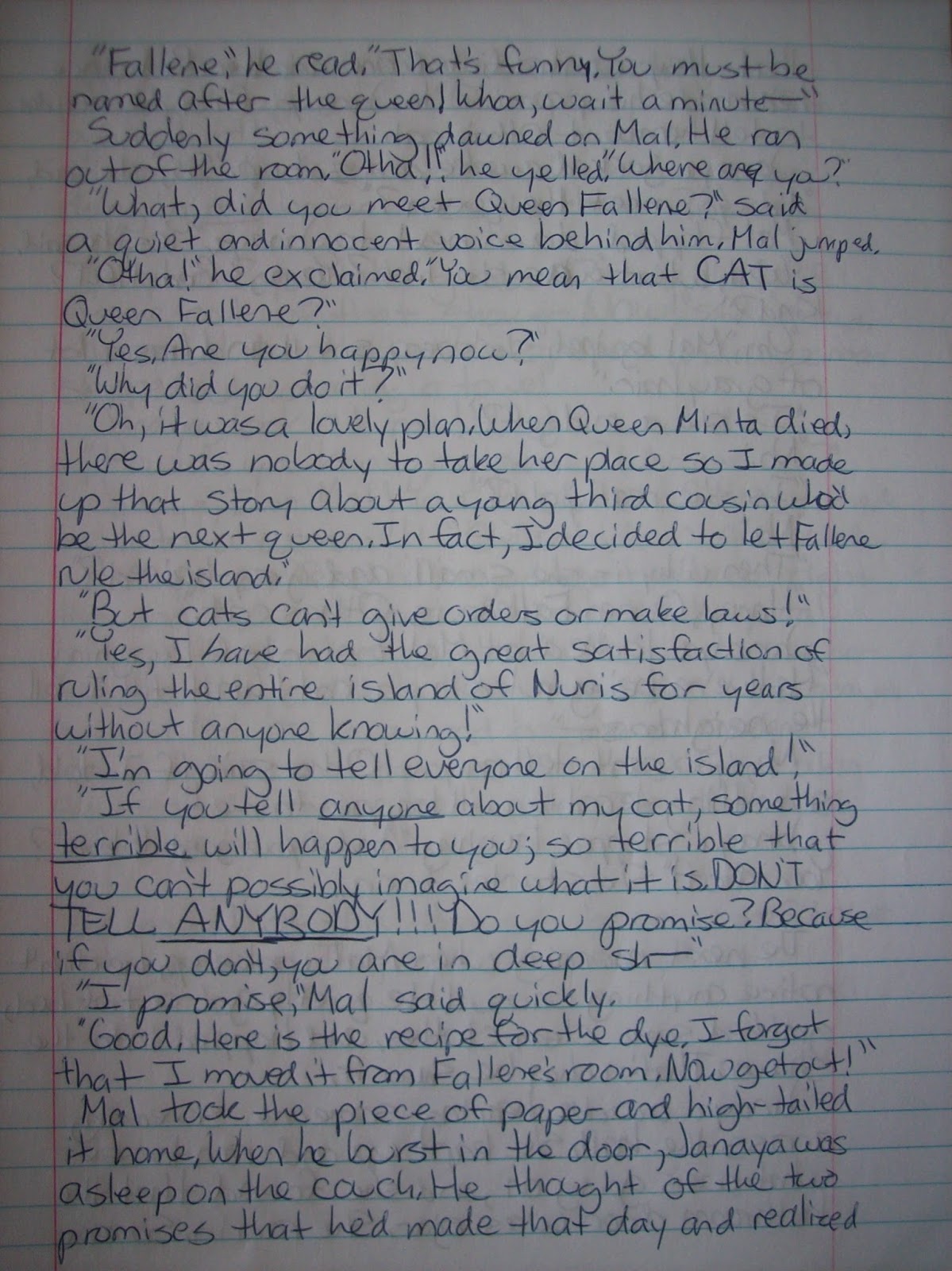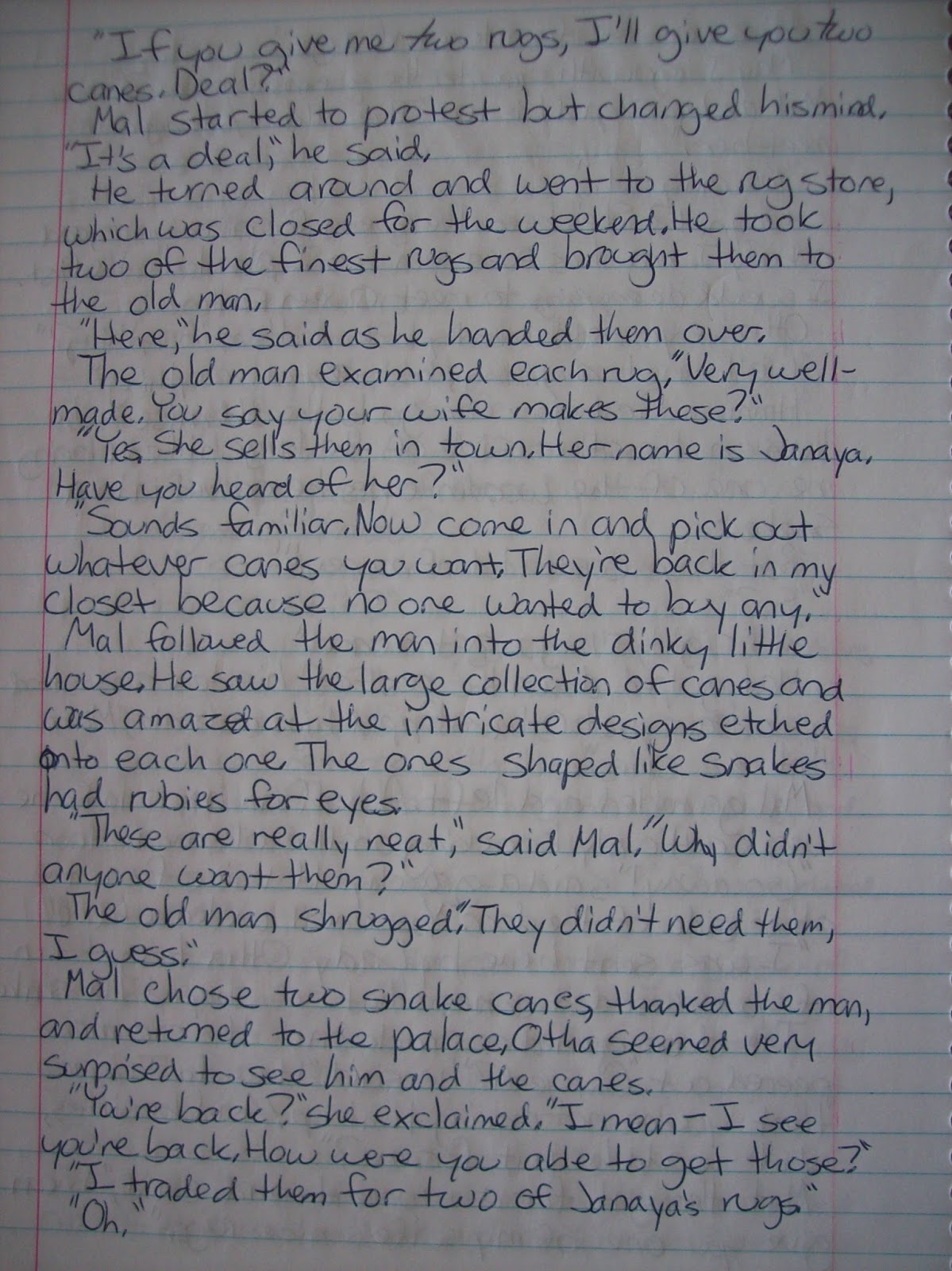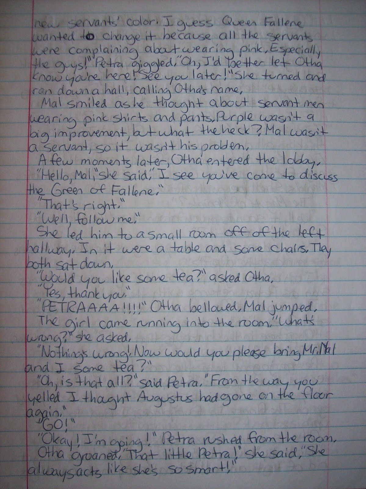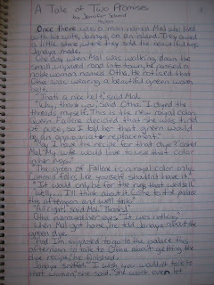 My writing has changed a lot since the days I sat down with a ballpoint pen and notebook and began to write the story that wouldn't be seen by the reading public for another eight years. Just for fun, here are some pictures from that notebook. (Don't mind the terrible penmanship. Apparently it's a requirement for authors to have bad handwriting.)