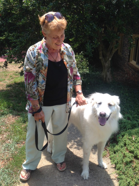 Kay Barrett and CokeUdderly has five Great Pyrenees, just like Split Creek Farm, a real goat dairy located in the Upstate. While I’ve seen Split Creek’s guard dogs, I’m better acquainted with Coke, a relatively new addition to my friend Kay Barrett’s.household. A few months back, Kay went to an animal shelter to adopt a much smaller dog. However, she quickly fell under Coke’s spell. When we play tennis at Kay’s house, she sometimes lets Coke out to greet her tennis buddies at the end of our matches. Coke is a BIG delightful, friendly bundle of energy.Appearance: Pyrenees are large—85 to 115 pounds when full grown—with luxurious white coats, chocolate eyes, and a plumed tail. Work History: Once France’s “royal” dog, he was bred to guard flocks in the Pyrenees mountains. His French nickname is Patou—shepherd. He’s a descendant of mastiff-type dogs. He isn’t a herder, he’s a protector. The Marquis de Lafayette brought the first Pyrs to America. At Udderly Kidding Dairy, these brave dogs protect the goats from coyotes—and poachers.Traits: Gentle with children and all kinds of young animals. (Kay’s grandchildren adore Coke, who also puts up with a new kitten’s attentions.) A good hiking companion, but as an avid explorer or territory, he isn’t the best candidate for off-the-leash walks. .He’s great in cold weather, but sensitive to heat and he drools. The breed is naturally nocturnal. Hope you’ll want to meet Udderly’s Pyrs when Henery Press releases BONES TO PICK, the first Brie Hooker Mystery in October.
