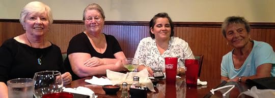 --and some photos didn't quite turn out so not everyone's pictured on this page. Why did I resist joining a book club? My two main reasons are interrelated. The first is time. I didn’t want to spend time reading books someone else picked for me when I didn’t have enough time to read all the novels I really wanted to read. My to-be-read stacks were already teetering with new works from long-time favorites along with manuscripts and novels from new authors I was meeting in organizations like Sisters in Crime and Romance Writers of America. My second reason for reluctance was my impression that book club selections would be dominated by “literary” titles that were presumably good for me but usually depressing and certainly not my mystery/thriller/romantic suspense mainstays.