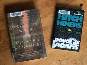 The two recently read novels I look at today, Medicine Walk by Richard Wagamese and The Hitchhiker’s Guide to the Galaxy by Douglas Adams, are, in many ways, like night and day. The two works do have some similarities: they are both relatively short and written in lean, minimalist prose; they both, as the title of this post suggests, are accounts of adventurous journeys. Also, the authors were men who died at relatively young ages, Wagamese in 2017 at age 61, and Adams in 2001 at age 49. And, in a certain way, both novels are the products of suffering: Wagamese writes from a well of firsthand knowledge of the pain and injustices borne by aboriginals in Canada, while Adams, like many another comedian, grappled with depression throughout his life.