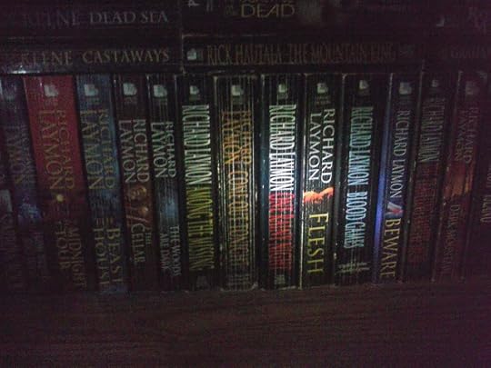 As you pass through the threshold of my little corner of the asylum, to your left sits a tall, cluttered, shelf with a little of this and a whole lot of that (including a little, stuffed Creature From The Black Lagoon who guards the goodies). Mostly, what resides in the shelf are my books, the conquered worlds of so many talents that have helped shape my own stories in some way. The largest contributor in my library, scribe to so many worn, dog-eared, paperbacks, is the late Richard Laymon.