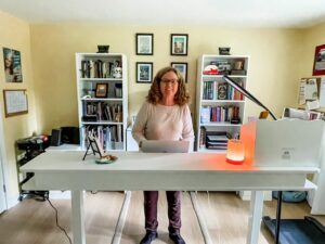 That’s been a big plus! If I want to get a little exercise while I’m working, I raise it to standing height and roll it over to my treadmill. Yesterday, I clocked about three-quarters of a mile while answering my email.