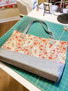 I sewed the paisley bag with the gray contrast in just 49 minutes! It’s such a fun, satisfying project to make. Everybody on my Christmas list is going to get one of these bags.