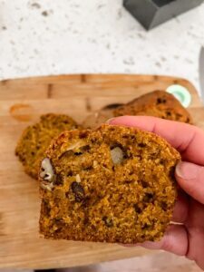 A word about baking times. If you’re baking a regular-sized loaf, the baking time is 90 minutes. If you’re baking mini loaves (about 6 x 3 inches), the baking time is about 50-60 minutes. For muffins, baking time is 25-30 minutes. No matter what you’re baking, regular loaves, mini loaves, or muffins, you want to make sure a toothpick or wooden skewer inserted into the bread comes out clean. That’s how you’ll know it’s done.