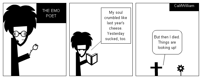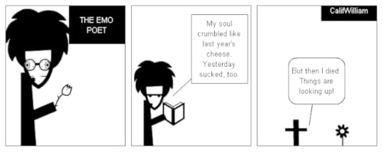 Confused about what I mean? Well, what do you think of poetry right now? If one person says they’re a novelist and one person says they’re a poet, who do you rank on top? Poets have been characterized as goths at coffee houses (perfectly valid life choice for poets, but not the only one) or cryptics saying nothing in the media, and that certainly adds to the effect.