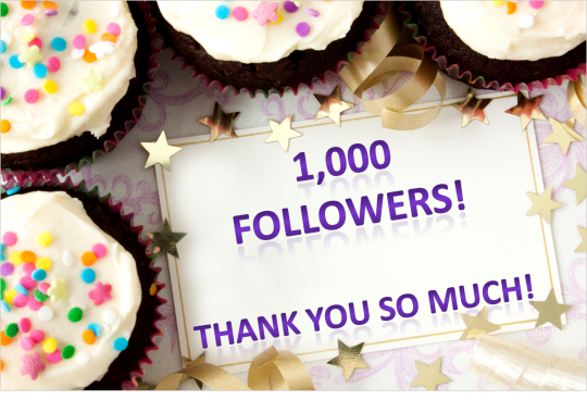 When I started this blog, I had HOPES that someday I’d hit this number, but when I started out the numbers went up REALLY slow. I started to stop letting that bother me and just work on writing and reading and having fun, because blogging is supposed to be about the numbers. But now that day has actually come. 1,000 followers. Wow.