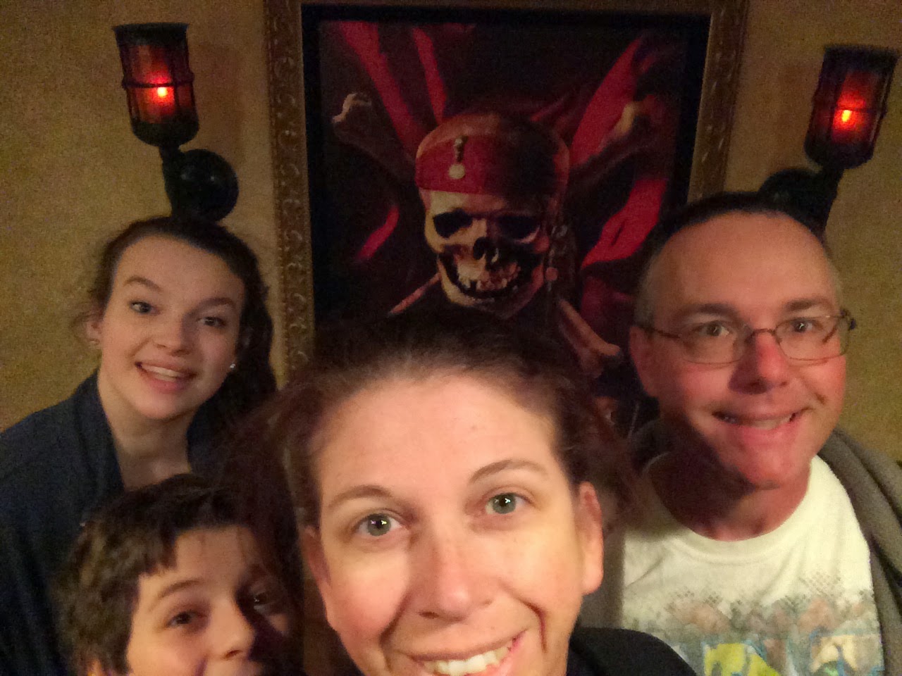 4am faces.It was glorious. Bigger than our house. It had three full bathrooms. My children ran around like nuts, turning on all the lights and taking pictures. It was pretty awesome. Even the doorbell was awesome - singing Yo Ho Ho Ho. All this awesomeness meant that when we finally went down for dinner everything was closed. My daughter suggested Pizza Port in Tomorrowland. We rode the monorail, arriving just as Pizza Port closed. My son suggested corn dogs on main street. Everyone else in the park wanted corn dogs too, and a half hour later we finally sat down to eat.It was delicious.