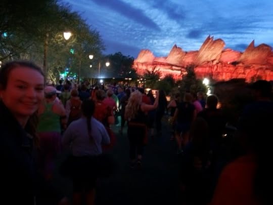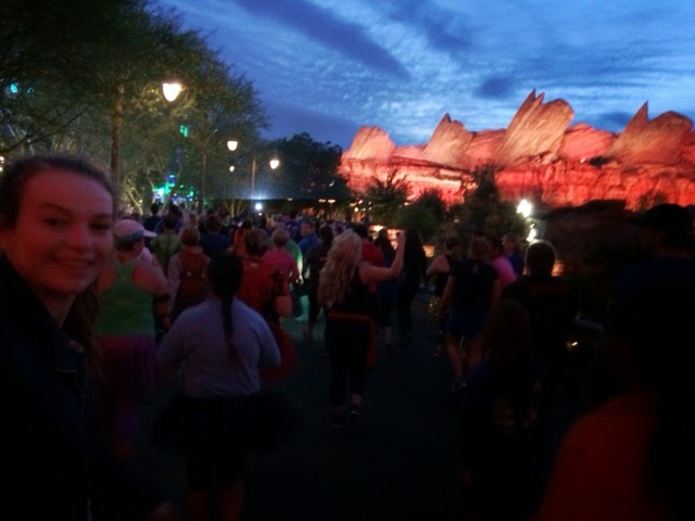 There were so many people in costume. So many people smiling. Kids. Adults. One man in an inappropriate Captain America bodysuit. We were in the 3rd corral, and by the time we hit the start line it was fifteen minutes into the race. We walked for a bit and then my daughter and I started running. We turned a corner and entered Car's Land.