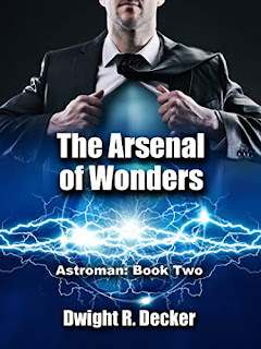 This latter world is the sort of setting that anchors Dwight Decker’s novel The Arsenal of Wonders. (It’s worth noting the book’s title echoes that of The Arsenal of Miracles, a 1964 SF novel by Gardner F. Fox, one of DC’s most prolific scripters during both the Golden Age and the Silver Age.) Using tropes familiar to fans of the Silver Age, Decker builds a universe about a superhero who is displaced in time and in space.