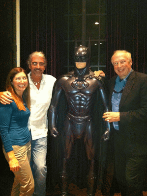 Lisa Niver Rajna, Greg Cummings and Richard Bangs pose with the Caped Crusader in Bel AirOn a personal note, I met the author, Greg Cummings, at a private screening in Bel Air. His astonishing first-hand knowledge of Africa, the gorillas and all the players in the madhouse of the jungle make this moving story very real. I know that his efforts to improve mining conditions and also help the gorillas have made for some of the best on-the-ground advocacy from the region. My elementary school students and I were fortunate to have him come and share his passionate intensity with us. We look forward to being part of the grassroots solution with creating more gorilla-friendly electronic devices, like cell phones and computers. Perhaps we can help to save this unique animal and even learn how to save ourselves.
