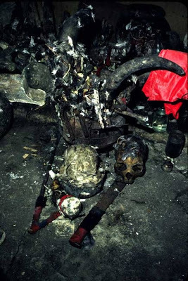 Cosmo had seen things at the back of Opala’s upright mud and thatch huts to make his steely blood curdle: ghastly instruments of muti that should have been buried long ago. Hidden in wooden boxes in that unholy ground behind the lattice bamboo fencing, amid the grim fetishes and rotting peculiarities, dwelled the horror many had written about but few ever saw. It was back there, locked away, if anyone dared look: a mirror for the dark recesses of the soul. An old palm tree bent over the river provided a mooring for the boat, and Cosmo advanced cautiously through the village, trying not to disturb anything. He had his Glock in one hand and, held high in the other, a live grenade with its arm taped down, to let whoever was watching know he meant business. As he approached the shadows behind the village, away from the riverbank, the air became rife with the smell of death and decay, and he began to see evidence of their grotesque carnivorous appetites. Bleached white human skulls ornamented the streets, while a multitude of thighbones and ribs lay piled in a rubbish pit behind the cluster of huts. Scraps of palm nuts, bananas, sugar cane and cassava at least testified to a varied diet. Then from somewhere nearby he heard the sound of a log drum, tapped in slow succession: tuc dun, tuc dun, tuc dun. Cosmo understood it to mean ‘welcome’, so he worked the pin back into his grenade and holstered his pistol, then continued into the forest, guided by the sound of the two-tone drum.As the gloom of the jungle encircled him, he was compelled to remove his shades to find his way through the thick entanglement of thorns and stinging nettles. Every few metres, planted atop a stake in the ground, was a grinning skull, some human, some ape, with many more in the mud bearing only their remains. Then he came to a passageway some twenty metres long, which he had no choice but to stoop and enter, or else turn back. It was an indestructible edifice, constructed from timbers and twine, and tightly woven into a tunnel, with overhead loopholes through which an unwelcome intruder could be speared. Inside the walls glistened with blood, and his way through was impeded by the stench as much as the confined space. When at last he emerged gagging at the other end he found a group of men in a smoky clearing, around a cache of weapons, and wearing caps of colobus monkey and antelope skin. Their greeting was unspoken, as they preferred to engage in a wordless standoff of cocksure postures and cold stares, enhanced by their weird surroundings as much as their attire.Behind them stood a lavish shrine, made of a multitude of polished elephant tusks encircling a crude wooden statue, about two metres high, depicting a man with wide brown eyes and long lashes, who had a small, thin-lipped mouth and a straight, narrow nose, and was wearing a pith helmet and khakis. The effigy was similar to the witty carvings he’d often seen in the Congo, typifying the colon, only this one was much larger, with brown rather than pink skin. Despite having the lithe features of a muzungu, Cosmo knew it to be a likeness of the great Congolese soldier, Ngongo Lutete. General Kiko and his Mai Mai rebels believed they could fully resurrect him, and that once restored to life, the legendary cannibal warrior would lead them to victory against any enemy. The ritual required the eating of a muzungu, along with copious quantities of iboga (a highly psychoactive African shaman’s root found only in the jungle) within the confines of the ivory shrine. Although iboga was plentiful in this part of the jungle, bazungu were scarce. The drumming ceased as General Kiko stood up from the centre of the clearing. He was a light-skinned, clean-shaven man, in his late thirties (though he looked to be in his twenties), with the letter ‘K’ carved across each cheek, and missing an eye, but he kept a pink, glow-in-the-dark golf ball in its socket. On his lumpy head, he wore a lime green wool cap pierced with countless little shards of human bone, battle souvenirs so dense it looked like chain-mail armour. His outfit was less idiosyncratic: olive gumboots, a pair of baggy, navy Adidas track bottoms, and a brown, long-sleeve T-shirt, boasting a picture of an AK-47 and the slogan, ‘When every motherfucking person in the room has to die’ in yellow. He stepped forward and glowered at Cosmo, who was much taller than him. With all that had passed between them, who knew what this short, capricious warlord might do next. ‘Chipu!’ he rasped, finally throwing a brotherly hug around his old adversary. ‘Welcome back to the Theft Bank, motherfucker.’ ‘Kiko, you old Crane,’ said Cosmo. ‘Kuma mayo! Vipi?’ The generals stood back and regarded each other with mutual admiration. ‘Eh!’ sneered Kiko, strutting and gesticulating like a gangster. ‘But we are just here, somehow waiting, listening to the radio, hearing all about Zomba wa Zomba’s greedy escapades, and wondering when we were going to get our share.’‘It was not possible to contact you before now.’‘I see you’ve come empty-handed, Zomba. Where’s your precious livestock?’‘A day’s walk from here, under guard in the forest.’‘Mmm-mm!’ slavered Kiko, slapping a hand on Cosmo’s shoulder. ‘OK. I’ll pay you a hundred dollars a kilo for them, my friend.’‘Why don’t we put aside talk of nyama bazungu for a moment?’‘Eh!’ laughed Kiko, sitting back down, and looking incredulously at the soldiers in their animal skins flanking him, who all nodded in accord with their fearsome commander. ‘What else is there?’Cosmo grabbed a seat, dragging over the bleached skull of a forest elephant and placing it opposite Kiko, then, leaning forward to make sure they all saw the eye-catching crest on his jacket, said, ‘I want to raise a fighting force, powerful enough to take on the UN.’ ‘You can’t take on all those muhindi,’ laughed General Kiko, and his soldiers agr