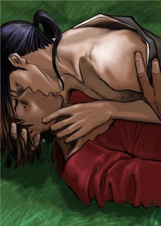 Engulfed by Mugen's wet heat, Jin rested on the hard angular body beneath him. Tremors ran through his own body, alerting them both to his need. Jin's heart pounded in his chest and he could feel the corresponding thumping in Mugen's breast. Harsh breaths caressed the side of Jin's neck.