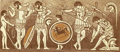 Syn tai e epi tai! With it or on it! The parting words of the Spartan women when their men went to war. In other words, the warrior should return with his shield, showing he hadn't thrown it down to run from the fight. Or on it, as his body was borne home.
