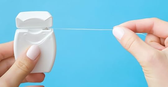 Wrap dental floss between the middle fingertips of both hands. Until there is about 2-3 inches of thread left. Then use your index finger to push the thread down between your teeth.