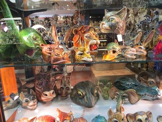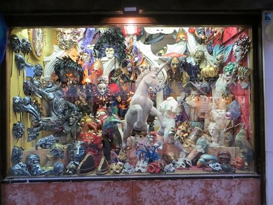 life-size unicorn in a mask-shop window.