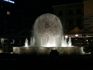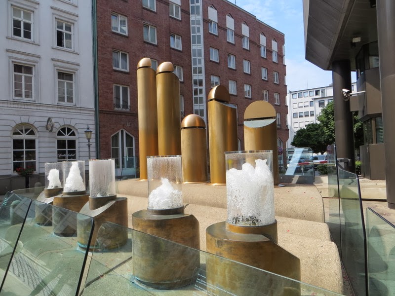 The pessimist's corner office. There are also some statues that showcase German engineering. This one was all about hydraulics. Water bubbles, those cylinders turn, and it treads that fine line between art, fountain, and wasted public funds.