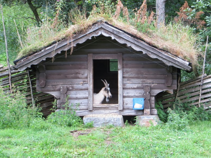 Lynx! And domestic. This is a traditional Norwegian house shape. Usually it is bigger and does not contain a goat. May have grass on the roof, though. For the goat.