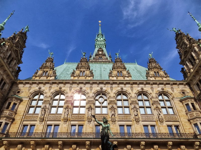 Or not. But, if you are in Hamburg, and you can tear your eyes away from the modernist financial black hole, you should stop by the Rathaus (translation: house of rats.) Or maybe City Hall. It has a beautiful courtyard.