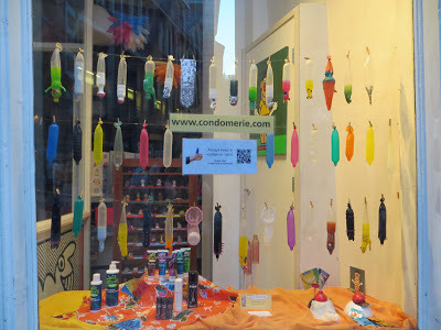 Meeting place for the walking tour.Speaking of compensating, you can visit a condomerie, and buy your friends a bewildering array of bad-idea protection!