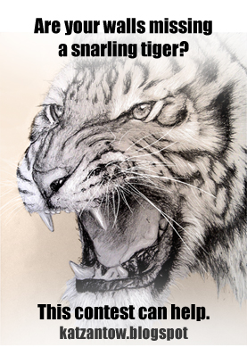 You can win this fine piece of art by Kat (White tiger; pencil touched up with Photoshop; 8.5"x11") to put on your wall! And an ebook which would be hard to put on your wall, but knock yourself out if you want to try.