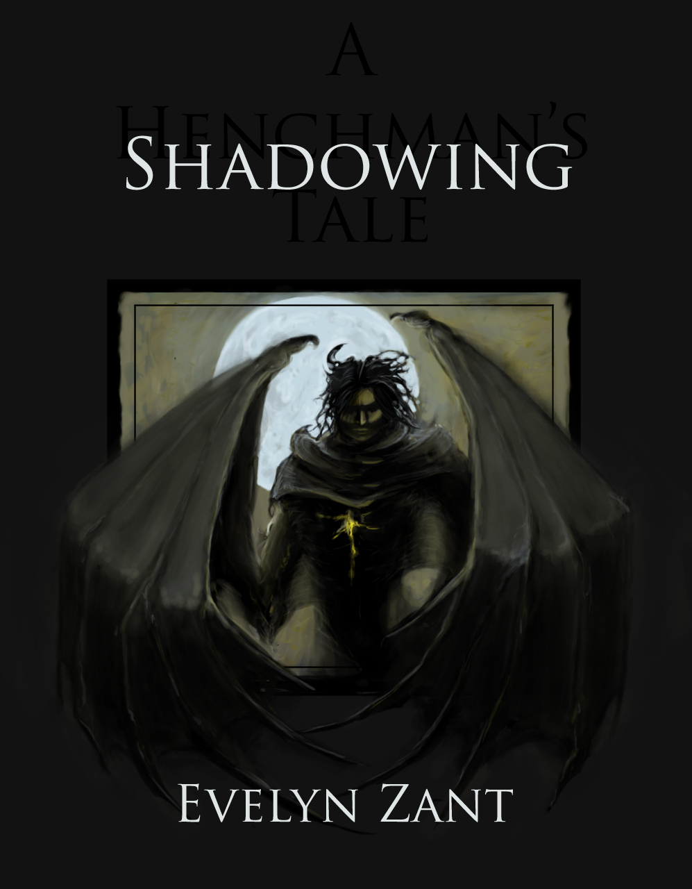First idea for a cover with a halfway-transformed henchman standing there, like a bro. Note that the wings are kind of like Devil May Cry swords.