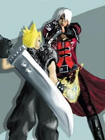 Disregard the crap-art.Notice the impressive sword.The size of swords in Final Fantasy games is one of the best things. Be the sword six feet long or one foot wide, IRL the characters' greatest threats would be their arms falling off.