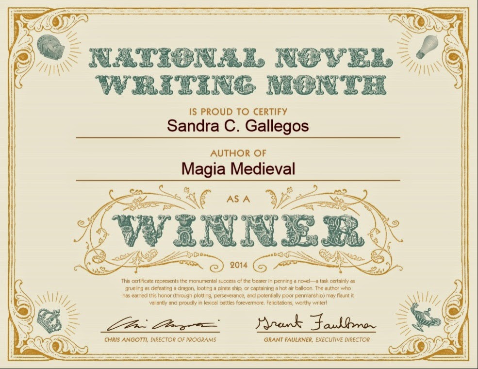 Vuelvo a asomar la cabeza por aquí para anunciar que he completado el reto del NaNoWriM o :D Concretamente lo hice anoche, a eso de las tres de la madrugada (sí, mi horario para escribir es principalmente nocturno), y enseguida validé Magia Medieval en la web del reto ^.^