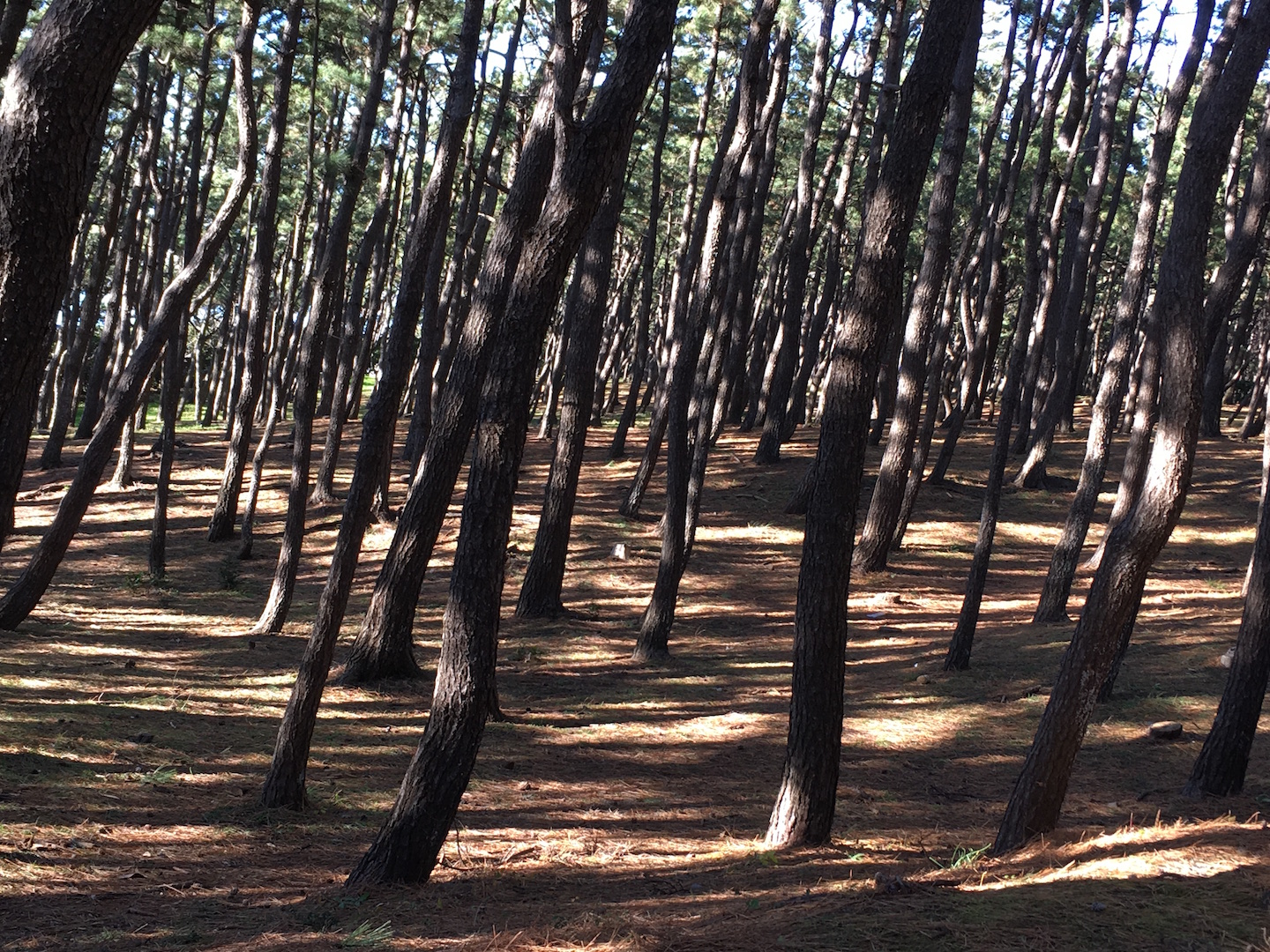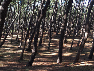 That day the wind gusts were so powerful it was difficult to walk along the seawall by the shore. Yet inside the pine forest, all was muffled.