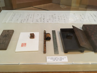 Bokusui Wakayama's writing implements and maps of his journeys through Japan.