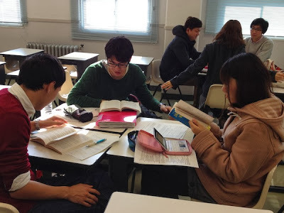 Otherwise, thanks to a substitute instructor, the literature circles for novels have been carried out with little technology. Literature circles are quite magical. Groups of non-native English speakers taking full control of discussions of books they selected themselves and actively analyzing, questioning, interpreting and critiquing is wonderful to witness. The Japanese professor covering my classes witnessed this literature circle magic and commented, "It was inspiring to learn from your methodology. I have to learn from you how you have successfully inspired the students to participate in the class so actively."