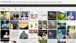 New HATBOOKS blog as viewed with ChromeProsI liked the fact that suddenly a visitor could peruse my posts visually, not just by tag clouds or post titles or dates. I loved how a visitor could click to select Recent, Date, Label to find posts. I loved how the flipcard images shifted and move into those groupings. Of course, I realized that to make the best use of this format, in creating future posts, I'd need to carefully select the first photo for each post, since that would be the one shown in the thumbnail (it does not seem possible to select which image to showcase). I also realized I'd need to shorten my post titles, but overall I loved the visual impact and this new face for my blog.