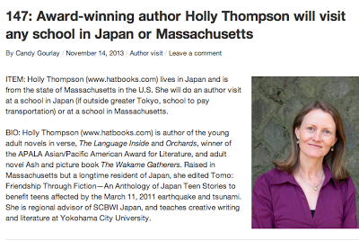 I have donated an author visit by me to a school in Massachusetts or Japan--item #147, so spread the word to librarians and teachers in MA and Japan . . .