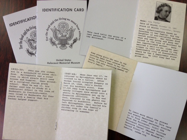 One of Hana's drawings from the Hana's Suitcase website via the Jewish Museum in PragueI also share with students the identification cards I've collected from my visits to the U.S. Holocaust Memorial Museum in Washington, DC.
