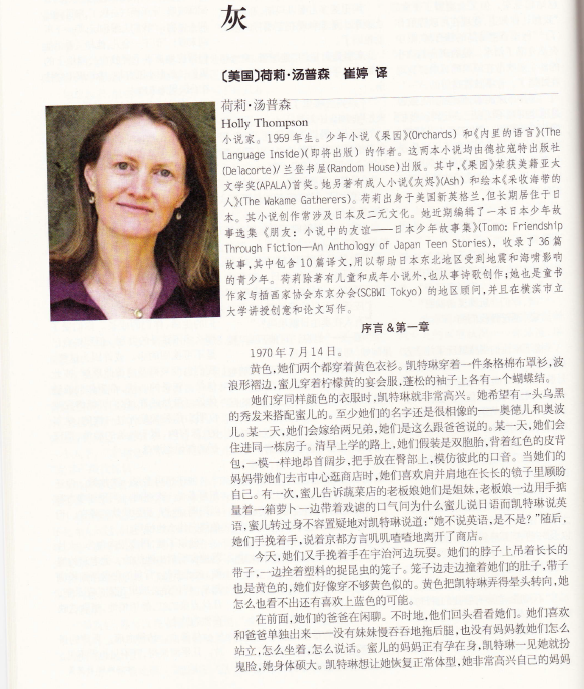 And, as a result of my participation in the Hong Kong International Writers Workshop and the related visit to China in October and November 2012, the prologue and first chapter of Ash were translated into Mandarin Chinese and appeared in the monthly 作家Writer Magazine in the May 2013 issue (pp. 24-28).