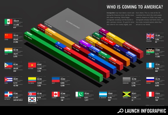 Given the development of infographics (such as these infographics on Visual.ly)as a means of communicating data, I've been searching for U.S. immigration information presented visually. Due to the U.S. government shutdown, as of this writing, census.gov and other key websites are not available. I should have done this COETAIL homework last week . . .