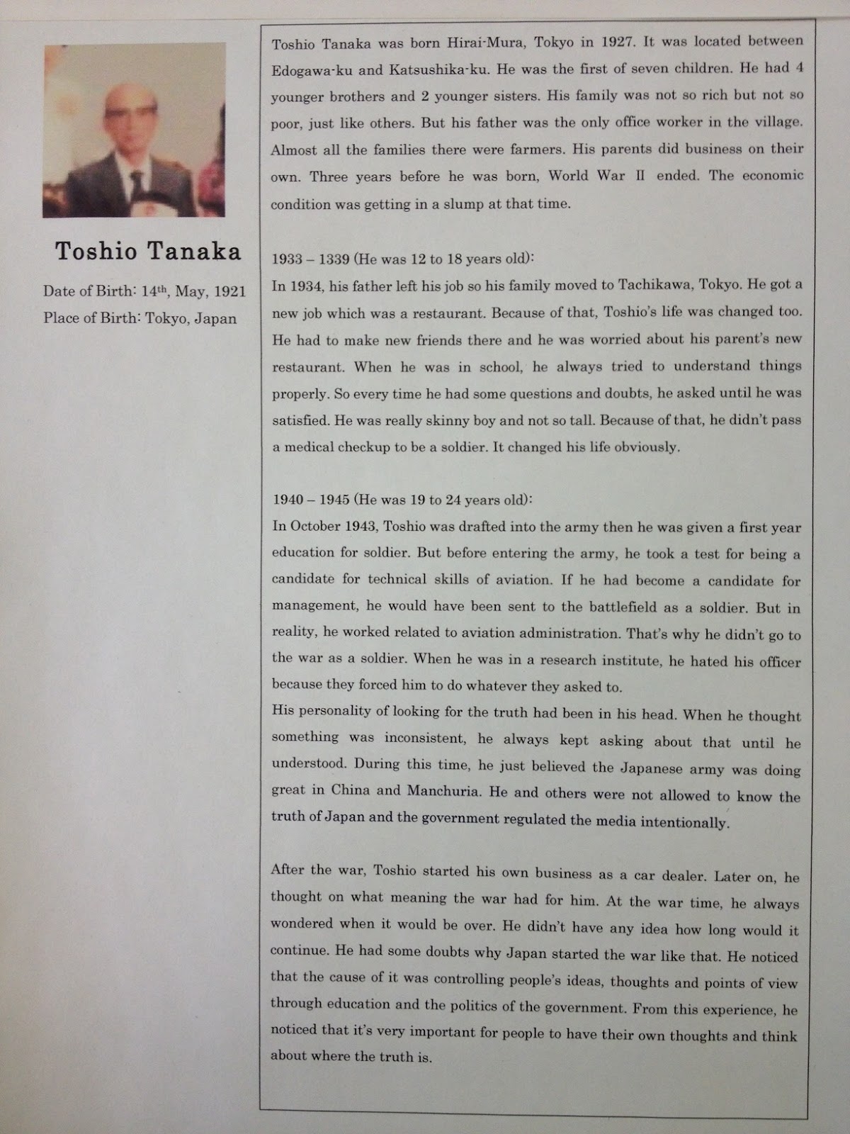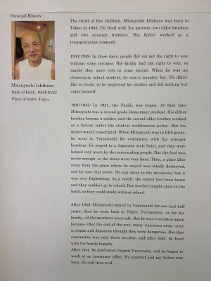 Doing all this in a one-week course is, well, intensive. My students impress me though, and they are always enthusiastic about the course and the final project. One student said after the recent intensive, "I learned I should know my family's story and I should hand it down to my children. Even though Japan is a very small island country, there are tons of stories about the war time."