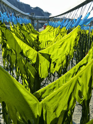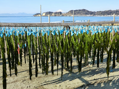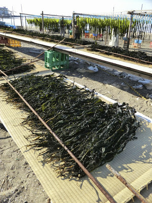 For my wakame presentations, however, I use lots of photos from my years of observing wakame cultivation and wakame gathering on the beaches in Kamakura. I take the audience on a virtual journey to Kamakura and show them the steps of the wakame cultivation process and independent wakame gathering.