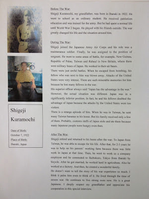 I then send my students in a different direction, looking at war experiences of someone they know. I assign a personal history project to create an identification card of a person they can interview who lived through the WWII/Pacific War years--a relative, a family friend, a neighbor or community member. The ID card is to follow the same basic organizational structure as the U.S. Holocaust Memorial Museum ID cards. On the final day, students present to the class the profile of the individual they interviewed.